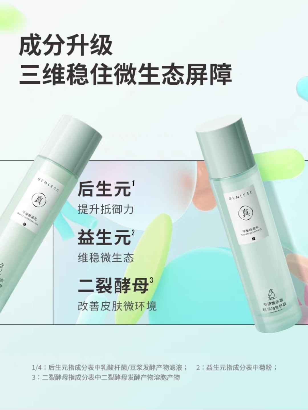 平衡清透水乳,3重微生态成分,清透水升级按压泵;修护强韧肌肤,改善皮肤泛红