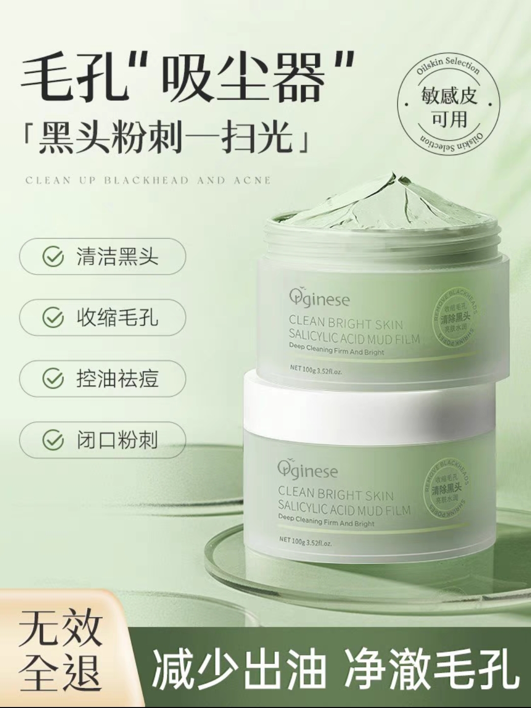 减少出油,净澈毛孔;改善油光,平衡水油;吸附毛孔油脂污垢,清理黑头;锁水保湿嫩肤水润润
