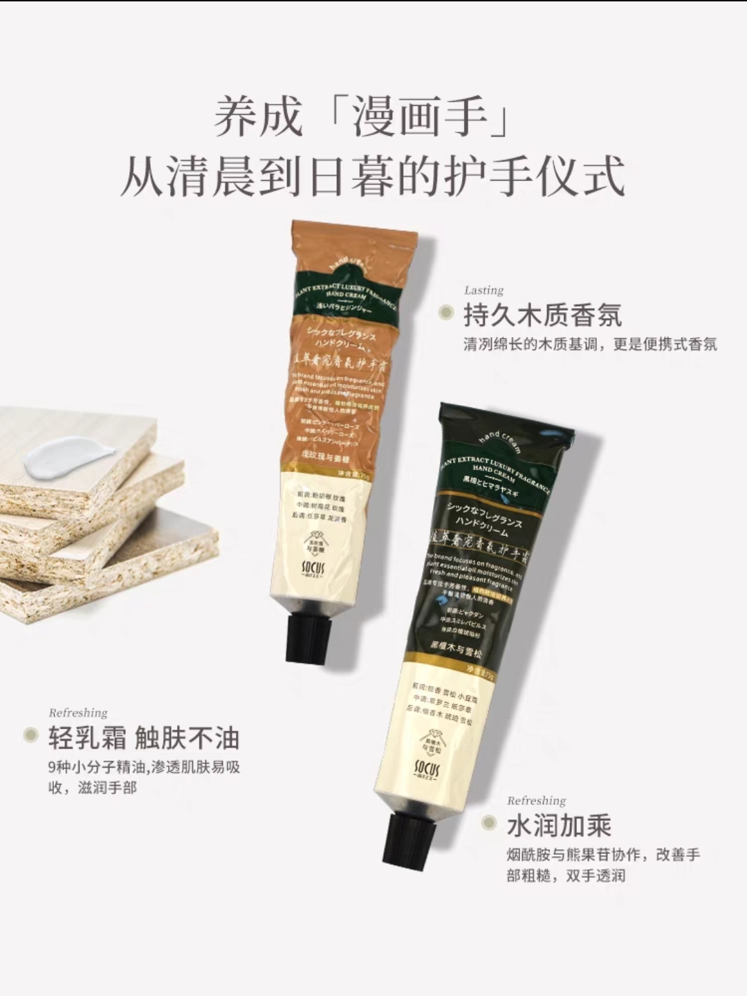 香氛滋润保湿;轻盈清爽不油腻