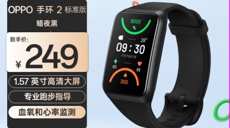 OPPO 手环 2 标准版 暗夜黑 智能手环男女运动手环 心率血氧睡眠监测适用苹果安卓鸿蒙手机系统 大屏离线支付