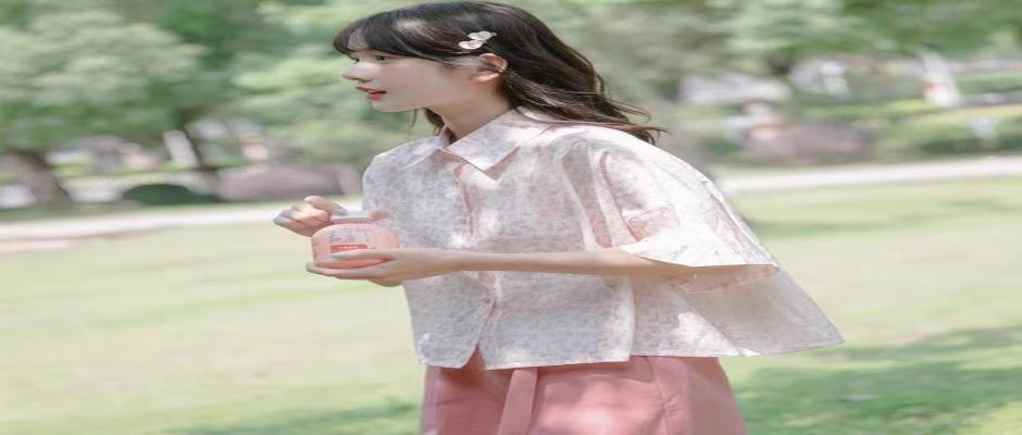 日系减龄polo领雪纺印花衬衫女短袖夏季短款学院风上衣漂亮小衫