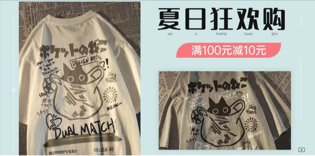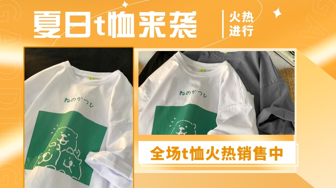 100%纯棉短袖日系卡通潮流情侣T恤男女同款情侣潮牌宽松高街半袖