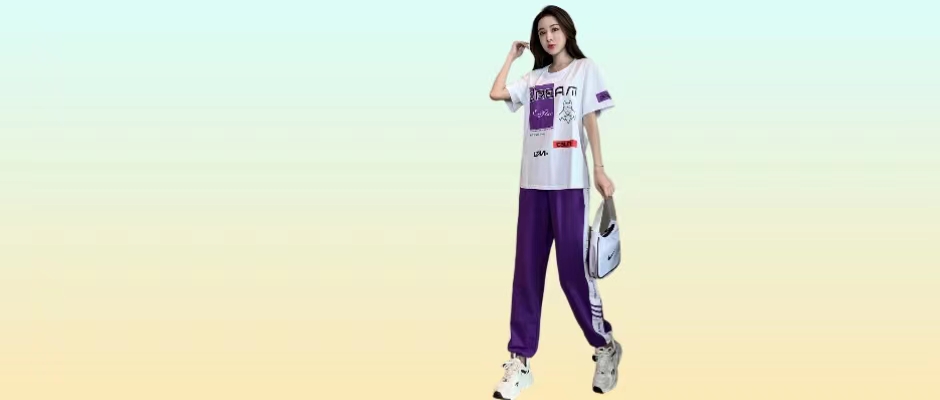 运动服套装女夏季新款时尚潮牌洋气短袖T恤女休闲九分裤中学生两件装 白衣蓝裤 白 S