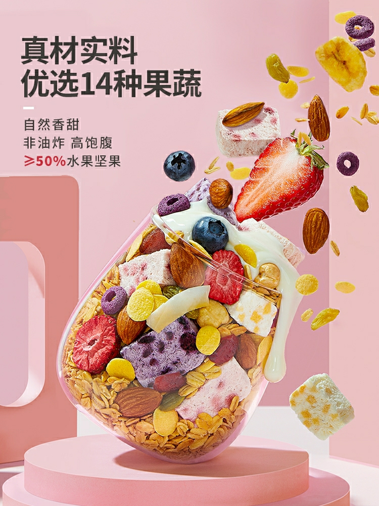 燕麦片早餐即食虫饮水果坚果酸奶麦片低卡无糖饱腹