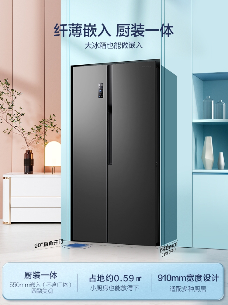 容声529L双门对开门一级变频大容量风冷无霜家用嵌入式纤薄电冰箱