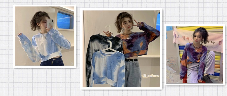 扎染卫衣女装春秋季2020新款高腰韩版宽松短款薄款长袖上衣ins潮