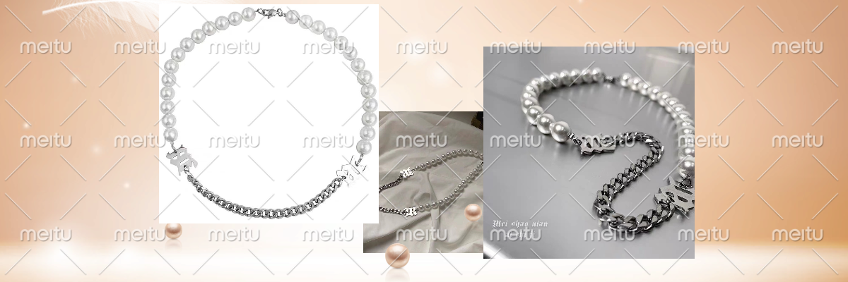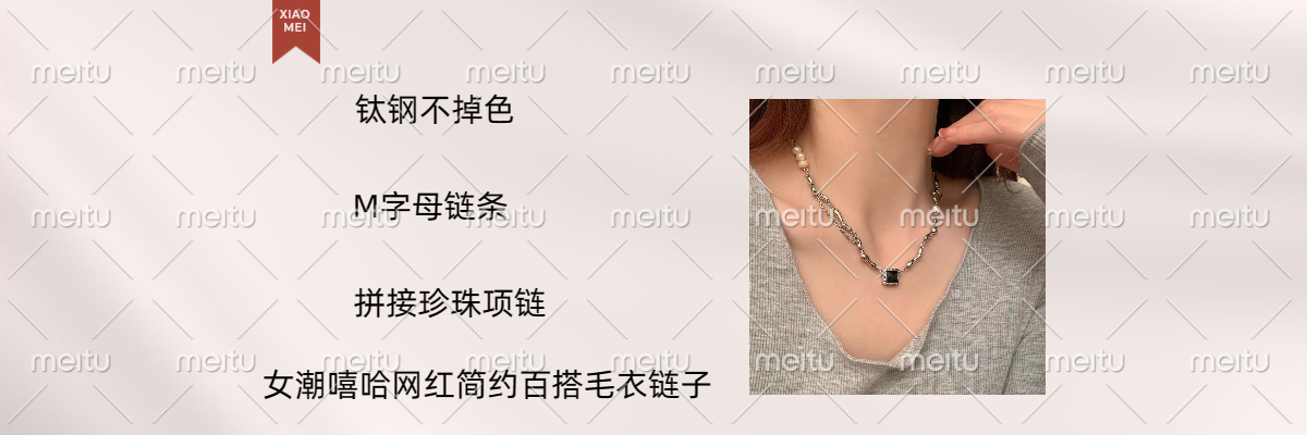钛钢不掉色M字母链条拼接珍珠项链女潮嘻哈网红简约百搭毛衣链子