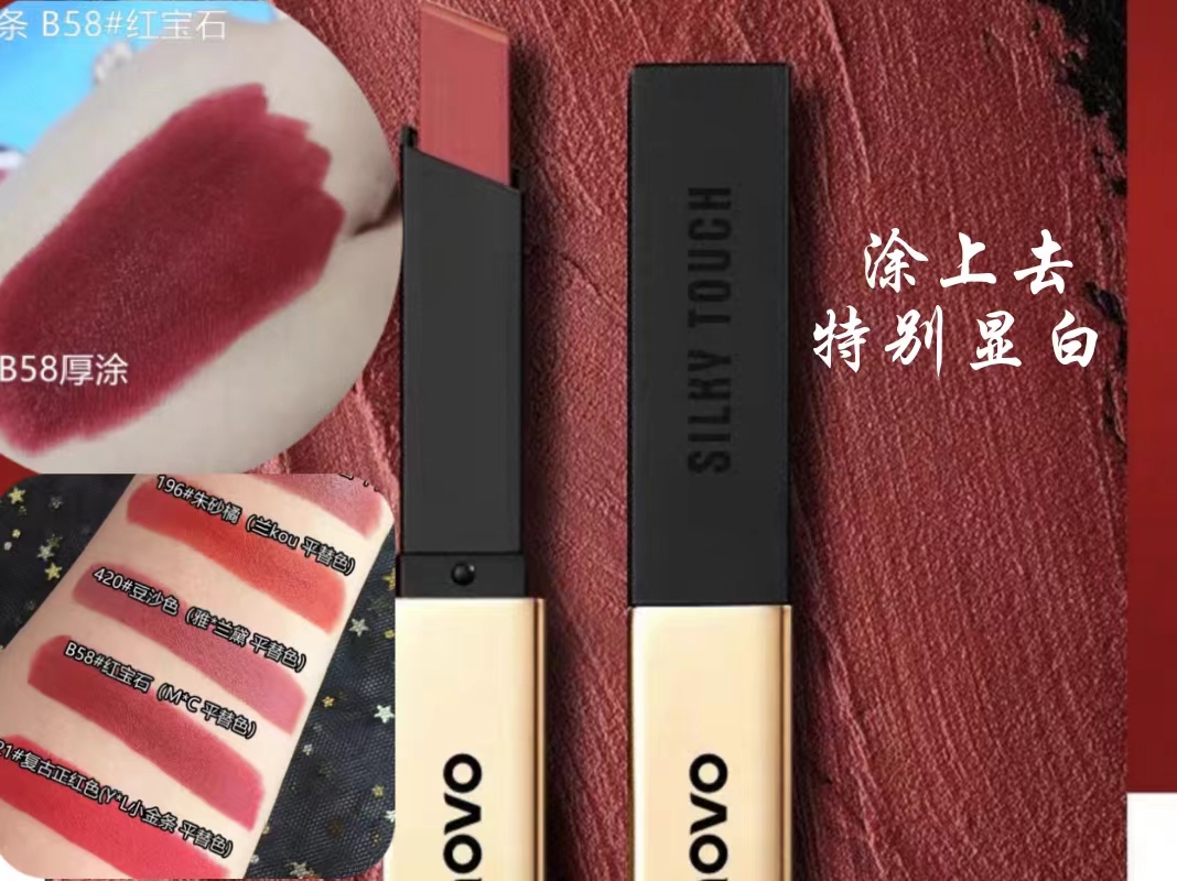 NOVO雾绒细管小金条口红雾面哑光学生平价小众品牌旗舰店官方旗舰