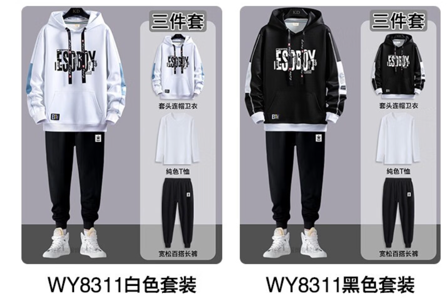 卫衣男春秋款休闲运动套装男士宽松连帽外套男衣服
