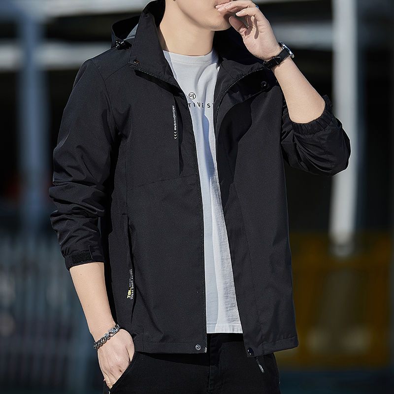富贵鸟男士外套春季休闲夹克连帽宽松立领风衣运动薄款男装上衣