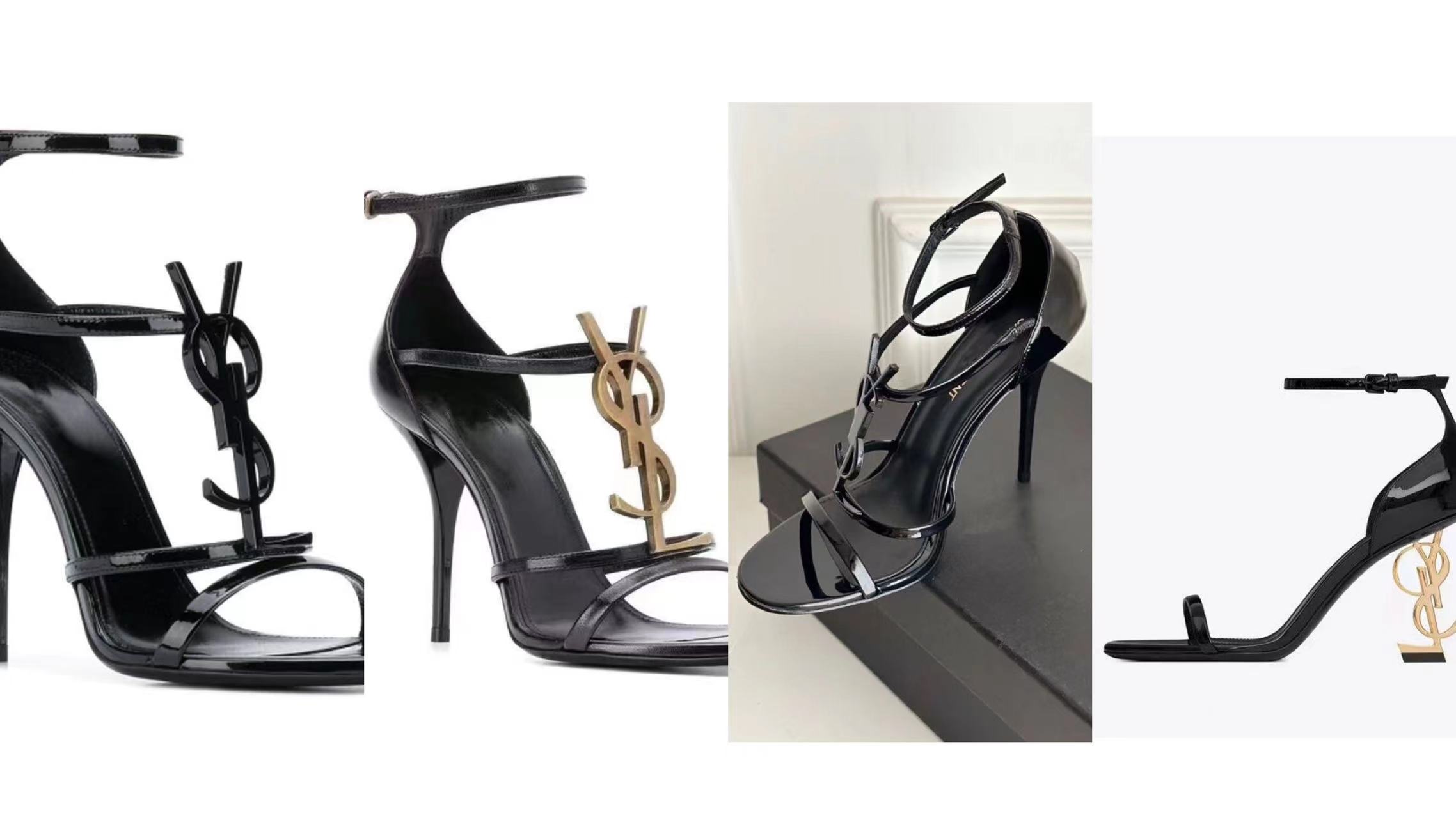 黑色漆皮性感字母跟一字带凉鞋女