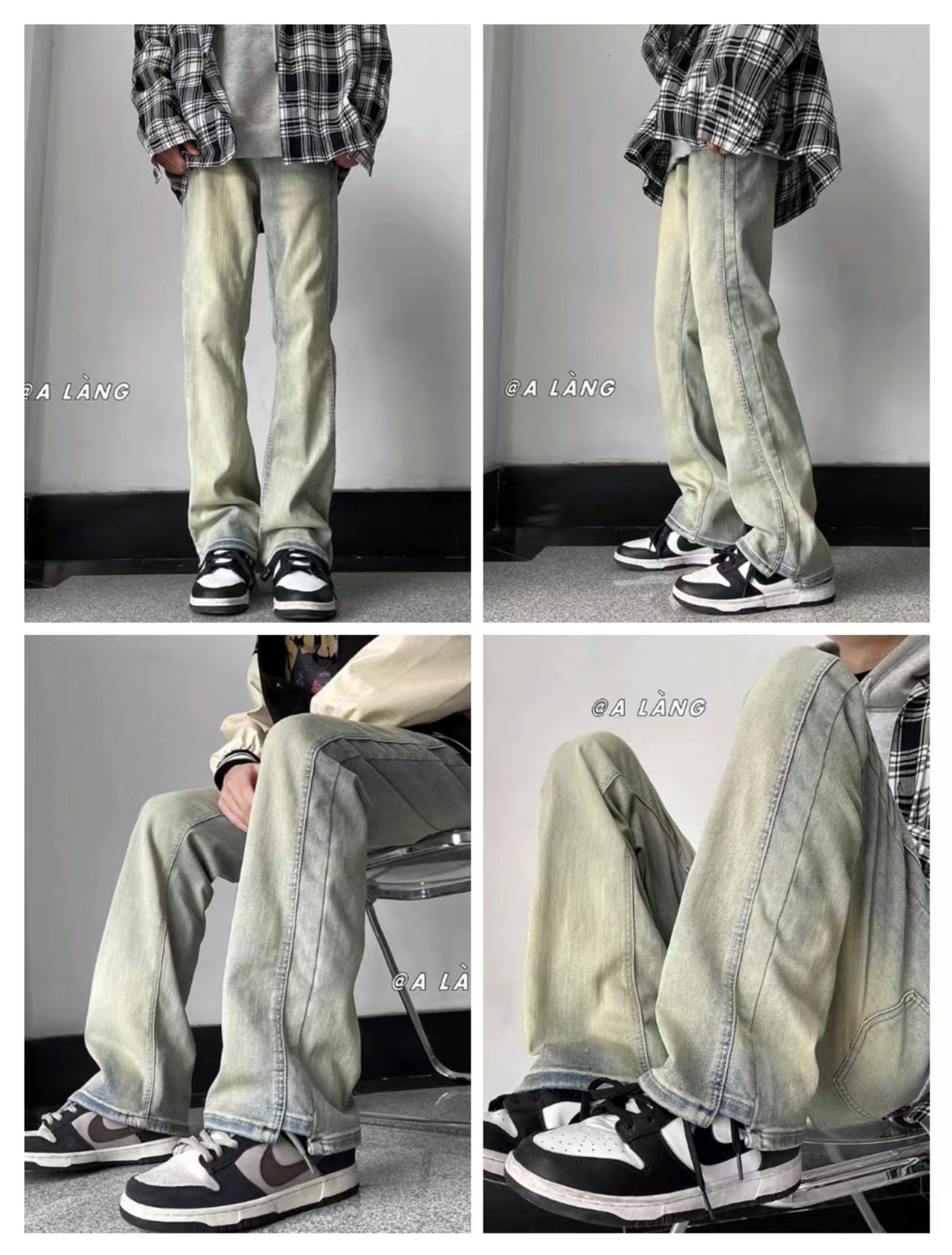 黄泥牛仔裤男款夏季美式复古直筒裤子高街vibe水洗潮牌休闲长裤子 黄泥蓝 M