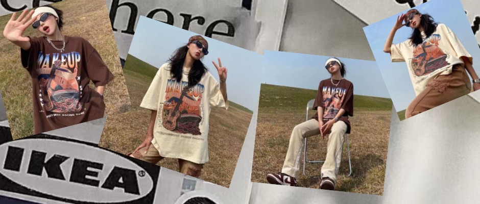 100%纯棉美式复古印花短袖T恤男女2022年夏季新宽松嘻哈街头上衣 宽松 杏色 s