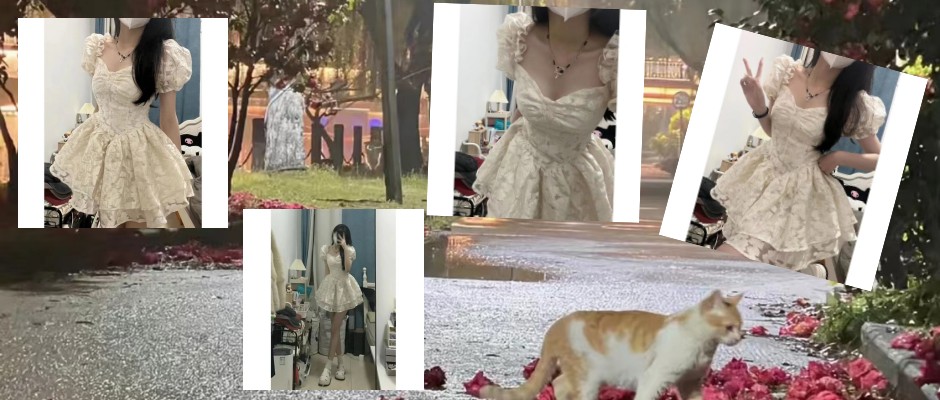 2023夏季公主裙甜美三层纱裙摆少女蓬蓬连衣裙蝴蝶结可拆 显身 米白色 s