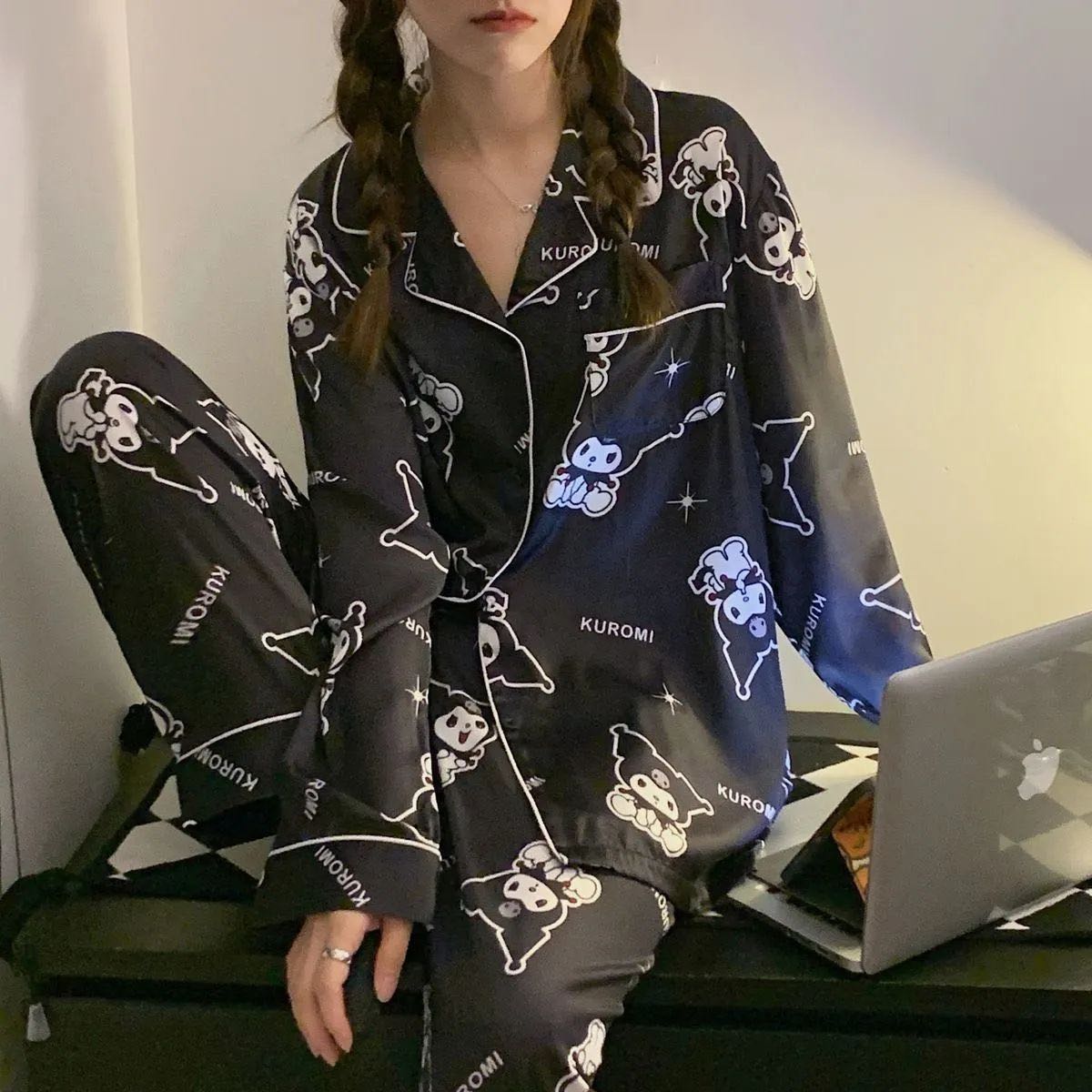2023年新款法式冰丝睡衣女秋款网红风高级印花长袖长裤居家服套装
