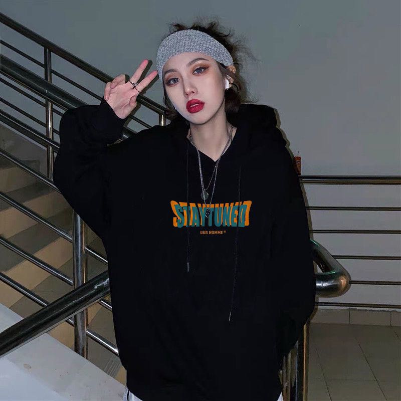 SHISHANG黑色宽松连帽卫衣女2023秋冬季新款韩版带帽子套头学生上衣外套潮