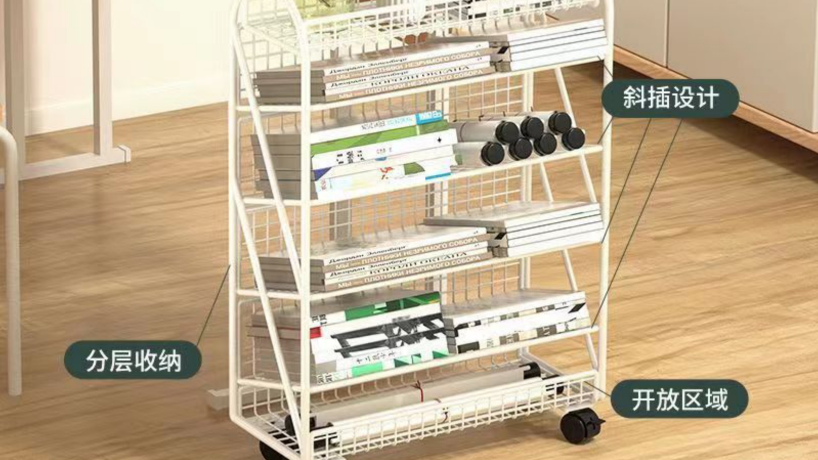 书桌旁小书架落地置物架课桌边侧立可移动带轮桌下书本收纳书柜子