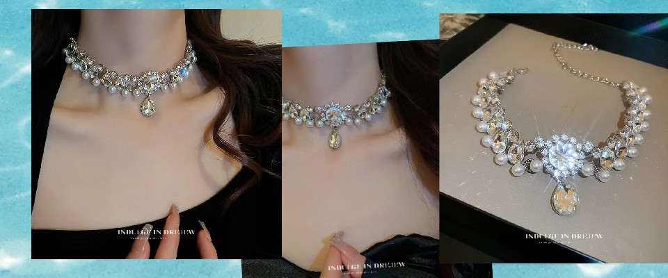 巴洛克珍珠项链女2023新款爆款轻小众高级感颈链·新娘礼服锁骨链 银色