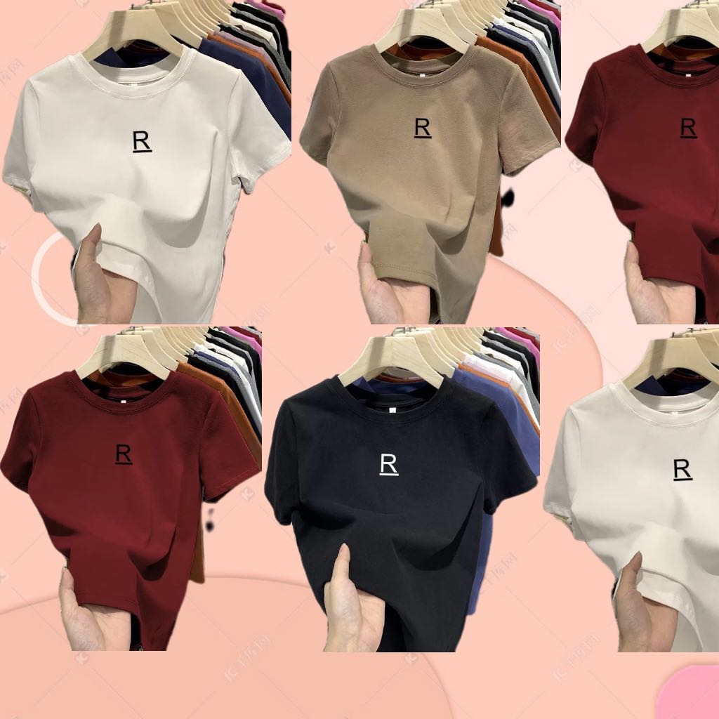 纯棉字母印花男士短袖圆领T恤女正肩洋气百搭上衣夏季显瘦打底衫