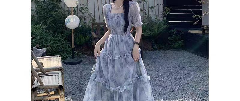 夏季2023年新款设计感短袖连衣裙赫本风女装法式小众甜美茶歇裙子