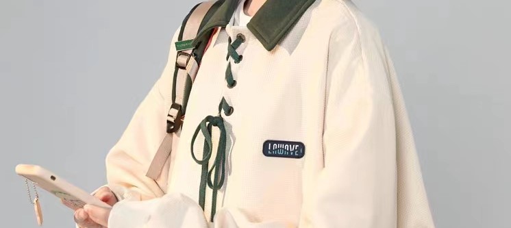 美式复古polo领卫衣女春季设计感小众日系绑带上衣2023新正肩外套
