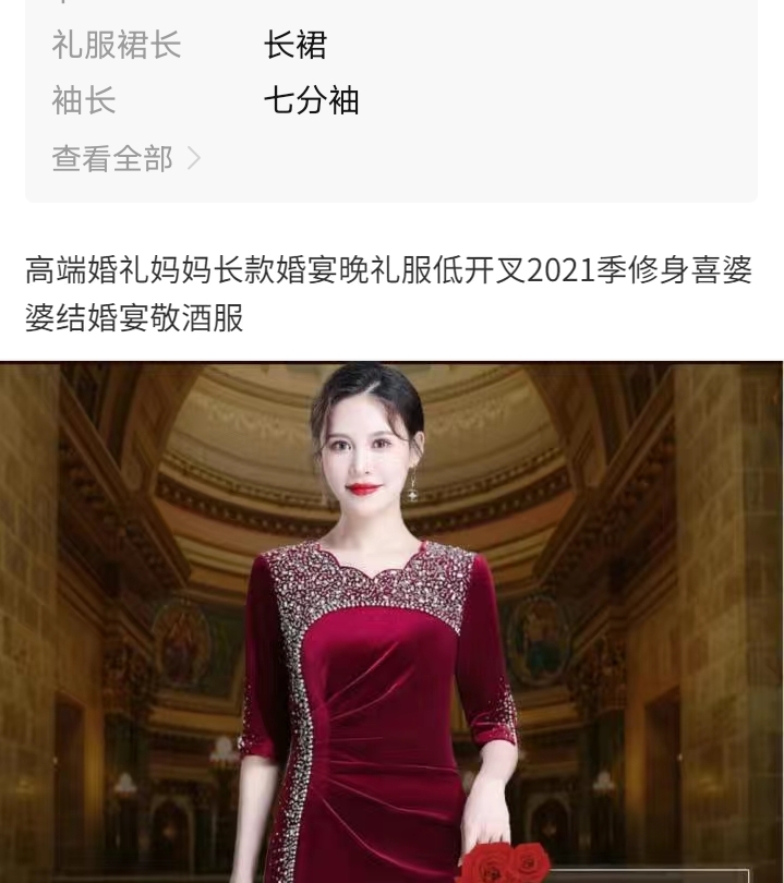 高端婚礼妈妈长款婚宴晚礼服低开叉2021季修身喜婆婆结婚宴敬酒服