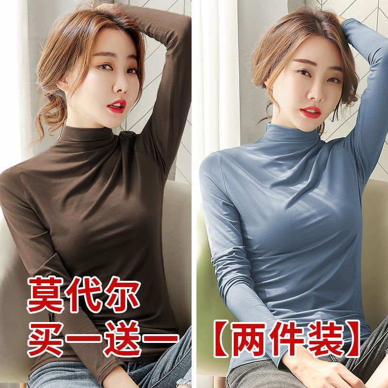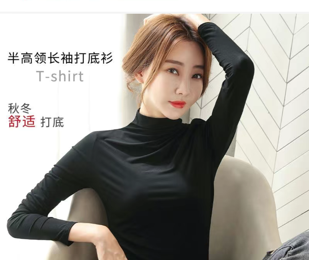 半高领长袖打底衫秋冬洋气女内穿大码宽松薄款百搭显瘦上衣限时购