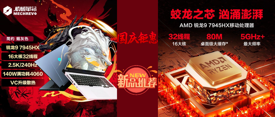 机械革命蛟龙16Pro R9-7945HX RTX4060 游戏本 15.6 黑色 512G