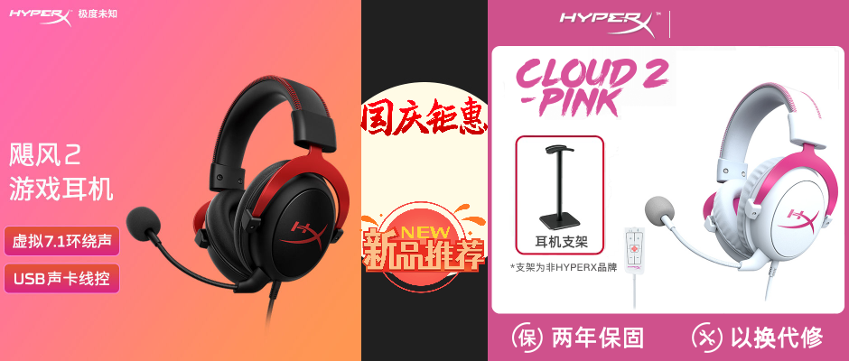HyperX 极度未知 飓风2 电竞耳机 黑红