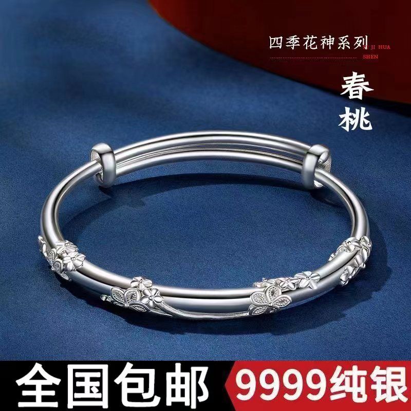 正品纯银手镯9999万足银百搭镯子女实心送礼