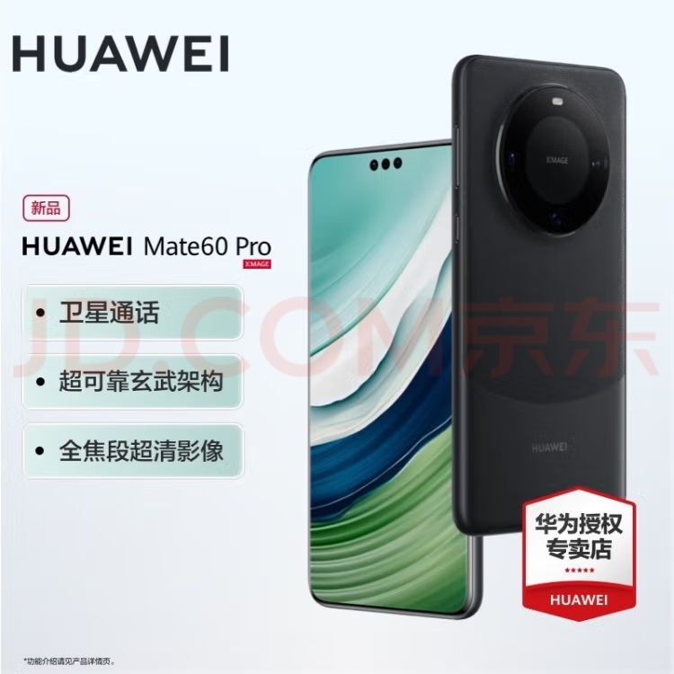 华为Mate60 Pro旗舰商务手机 卫星通话 华为无线超级快充 支持NFC 雅丹黑 12GB+512GB(全网通)