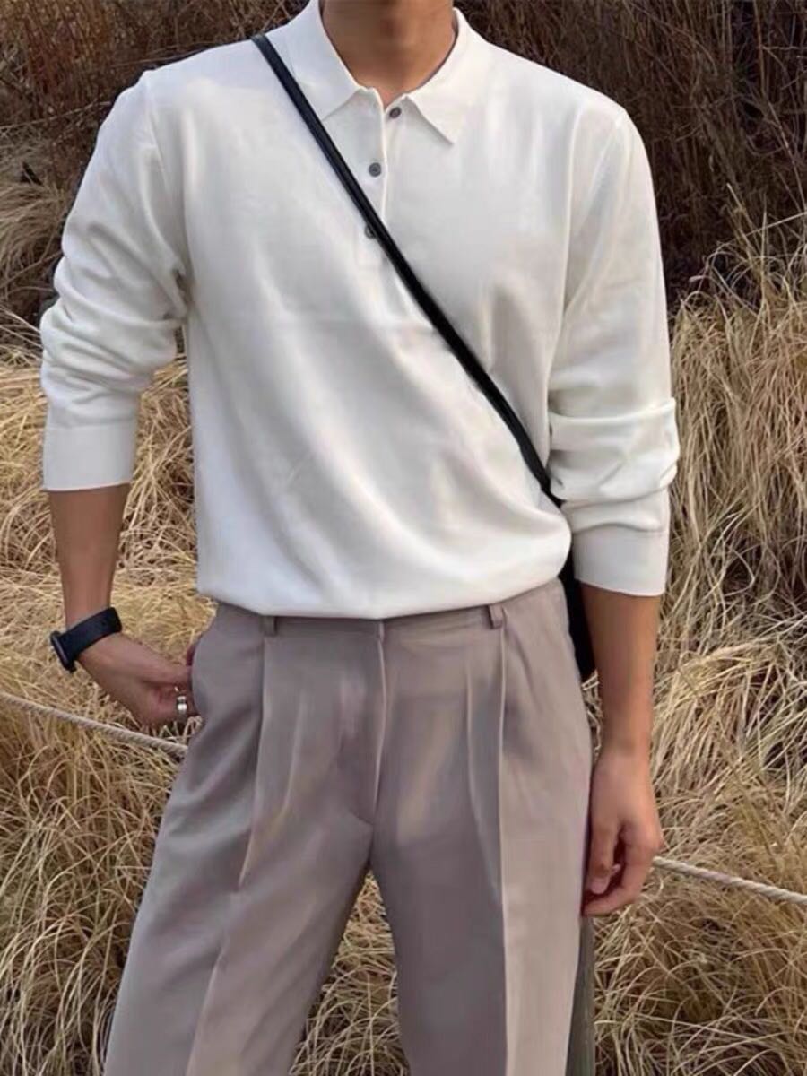 美式复古针织polo衫男高级感修身长袖毛衣休闲百搭纯色翻领线衣潮