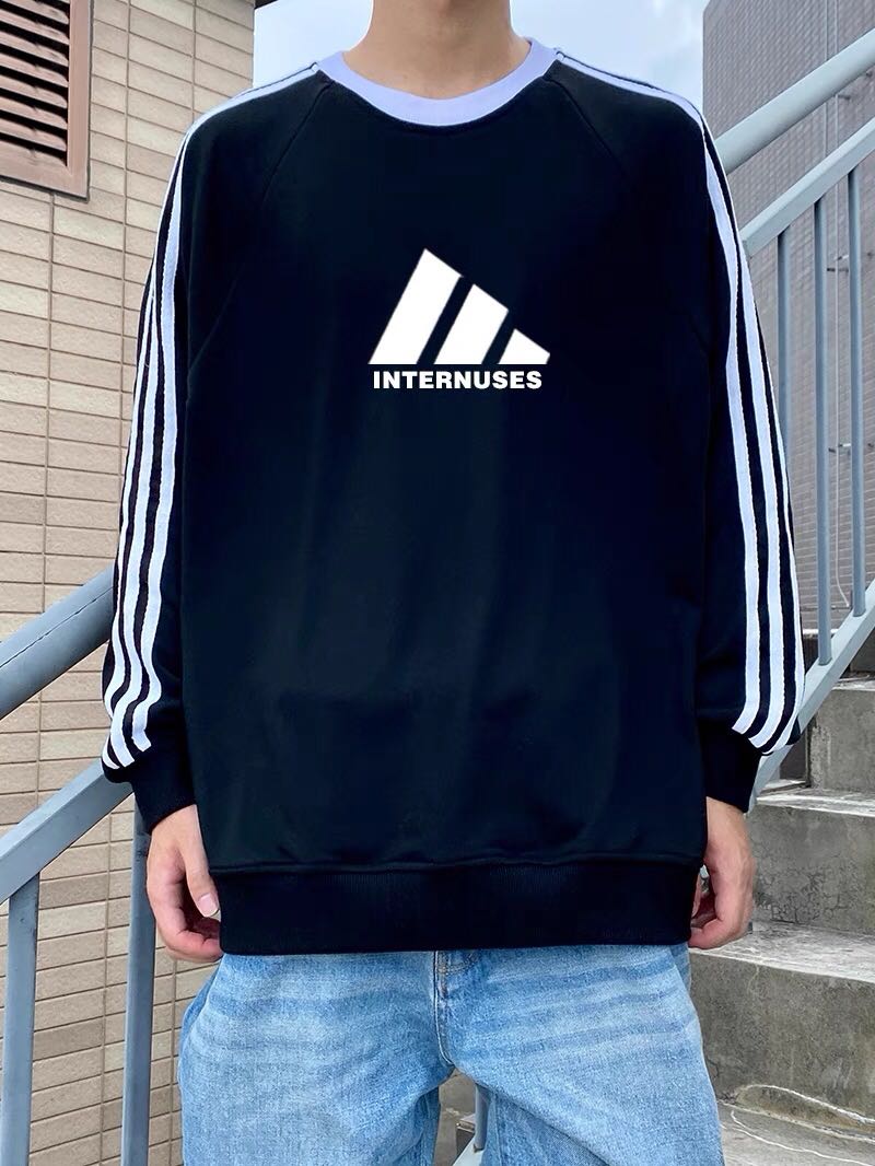 美式复古三杠条秋季新款设计感套头慵懒卫衣男女情侣宽松运动外