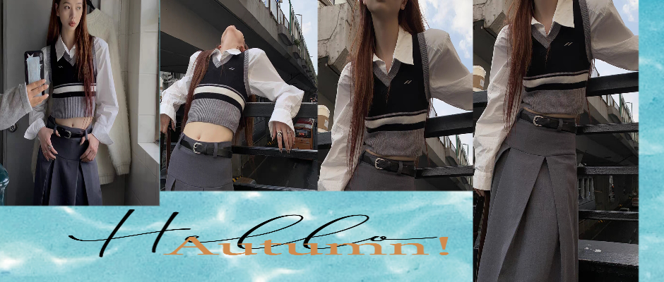 【两件套装】早秋新款学院风辣妹短款毛衣背心针织马甲叠穿衬衫女