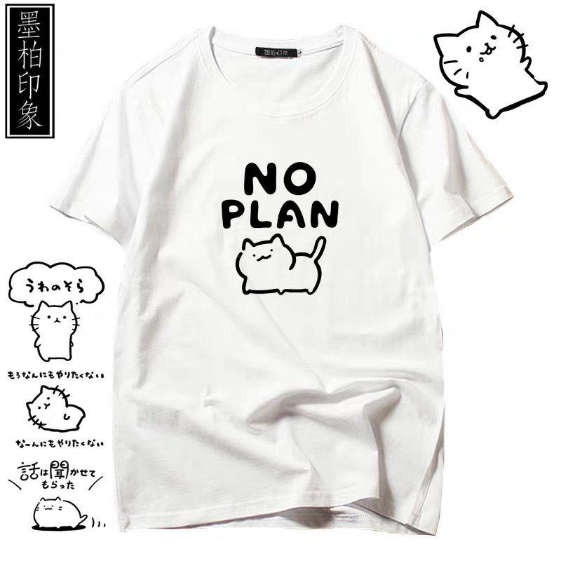 依依 透气纯棉宽松中性风女装/男装T恤 纯色简约猫 包邮