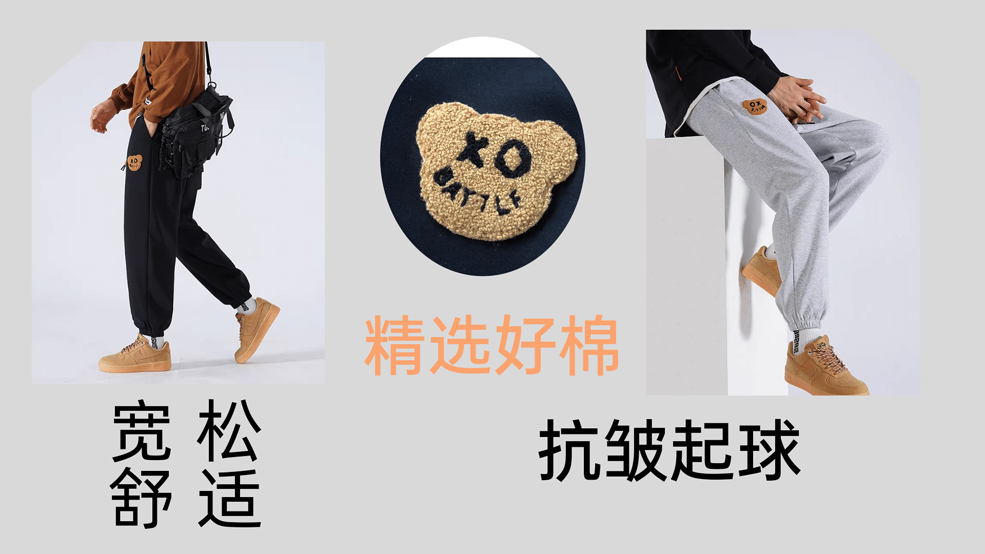 男士运动裤子男春秋季款卫裤刺绣潮牌2023新款宽松束脚大码休闲长裤 小熊黑色束脚 S
