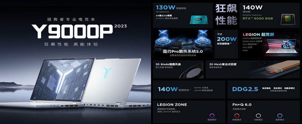 联想 拯救者Y9000P (13代i9-13900HX 16G 1T RTX4060显卡 )灰