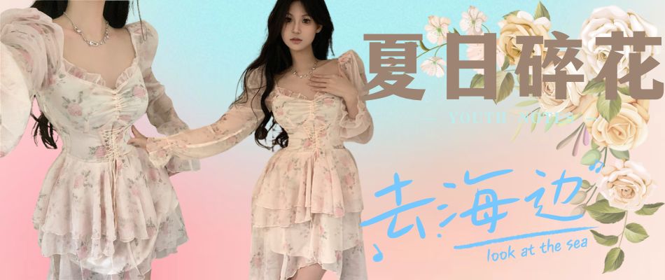 温柔风甜美泡泡袖碎花连衣裙女装夏季小个子气质收腰仙女短裙裙子