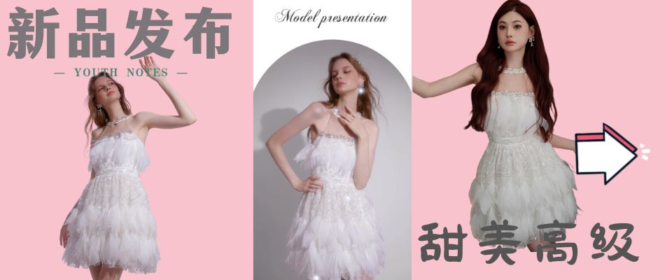 高定重工礼服白色晶珠羽毛流苏钻链连⾐裙 连衣裙 白色 XS S M L