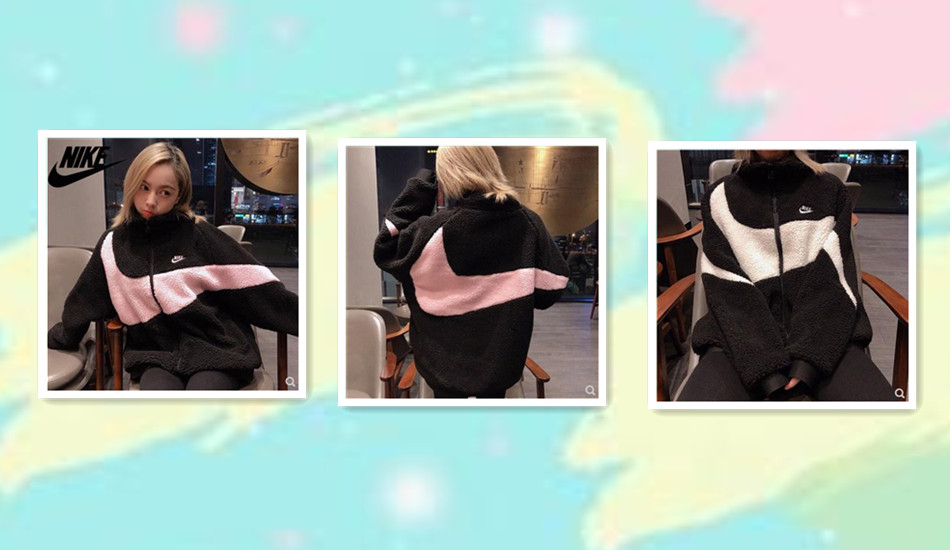 Nike耐克大勾羊羔绒外套男宽松夹克女加厚保暖大钩拼色开衫卫衣
