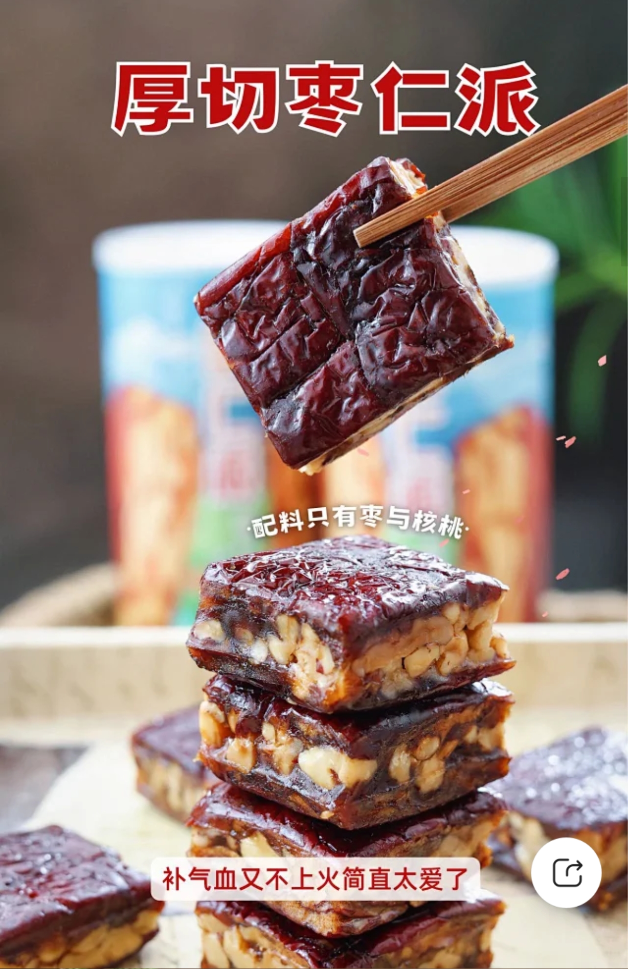 【补气补血 健脑益智 1+1>2】厚切枣仁派 纯枣与核桃的完美配合 无添加 让你享受健康美味!