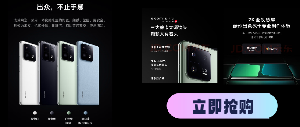 小米、徕卡联合研发,再现原汁原味经典影像 三大徕卡大师镜头,搭载徕卡专业光学,随手一拍,精妙百出 第二代 骁龙8 旗舰处理器,潜能爆发,跃级而至 全新亮眼屏幕,为你大展技术与创新 更有MIUI 14,这一次,税意新生