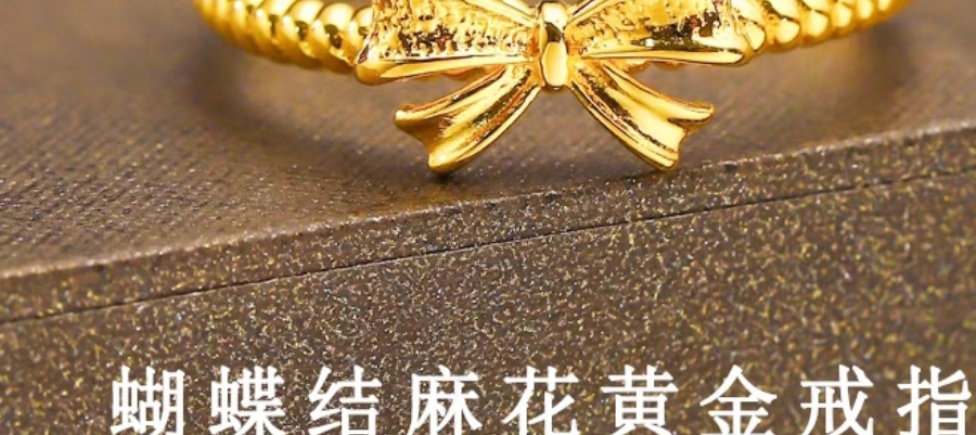 蝴蝶结黄金戒指女999足金在逃公主活口麻花边指环七夕礼物送女友