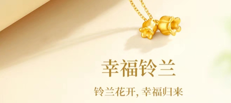 梦金园铃兰花黄金吊坠女足金9999花朵吊坠5D硬金挂坠项链正品礼物