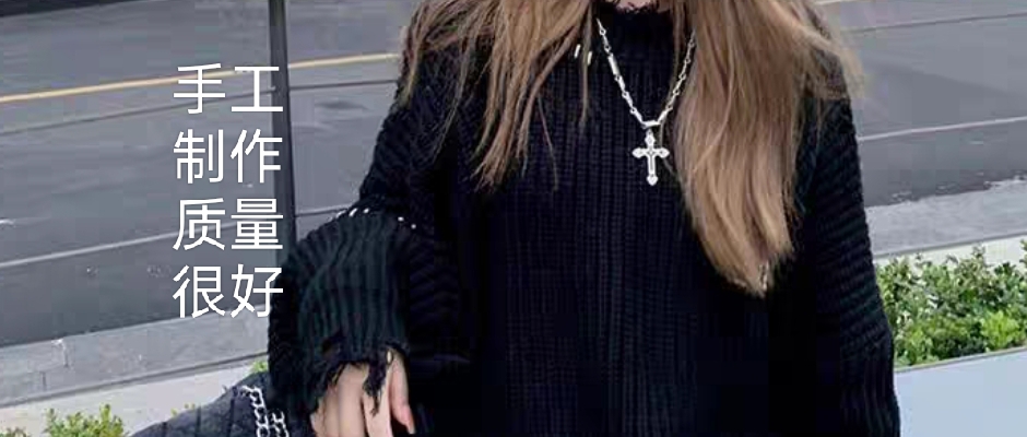2023新款设计感小众爆款针织上衣慵懒风宽松加厚黑色毛衣女秋冬季