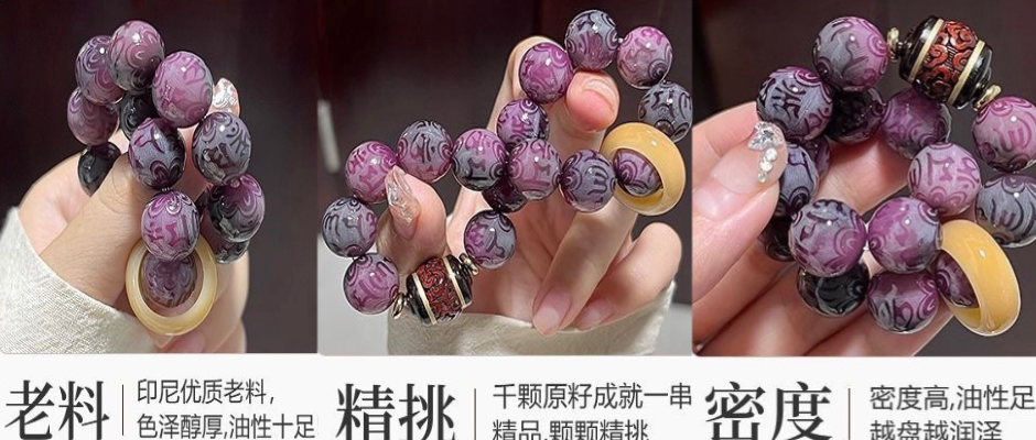 锦戴缘菩提手串真品六字真言绕指柔 黄杨木莲花