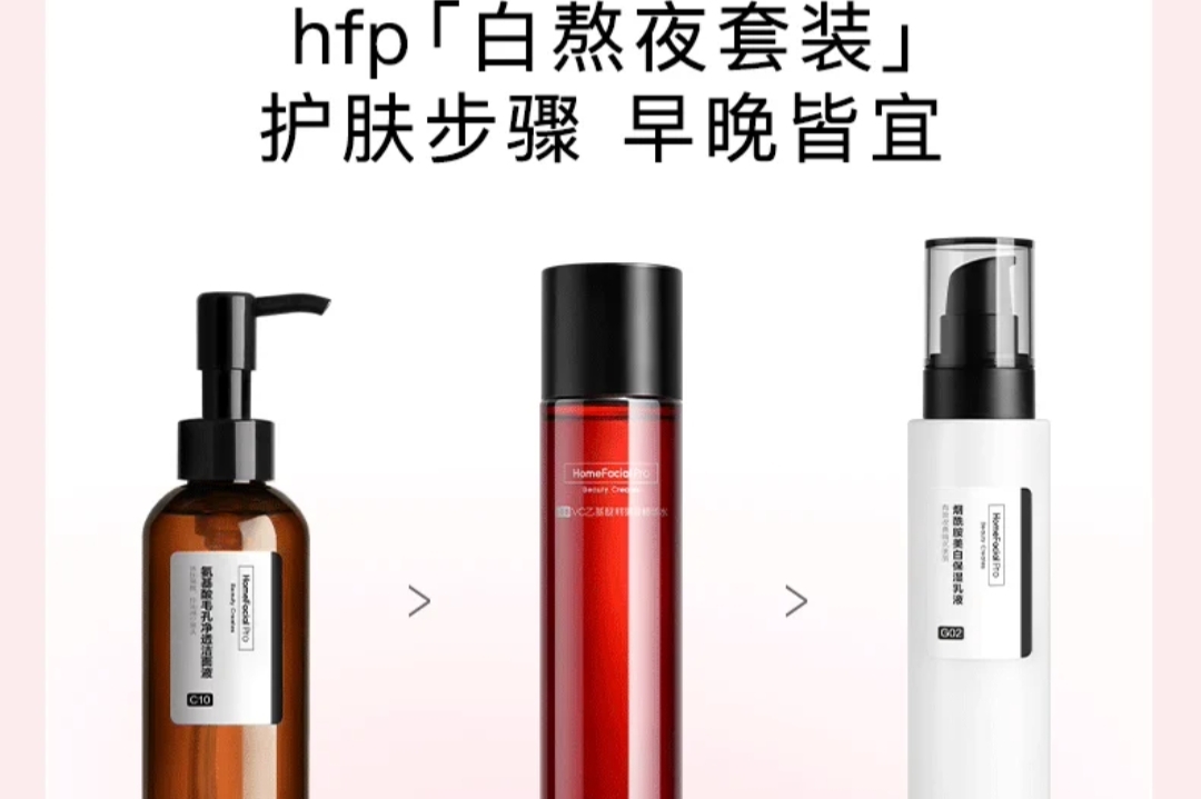 hfp白熬夜套装 红光水湿敷水去黄提亮烟酰胺美白乳液