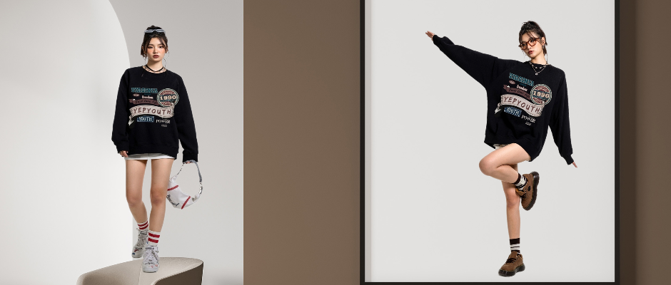 YEP美式复古圆领黑色卫衣女春秋宽松插肩袖上衣hiphop超火潮牌
