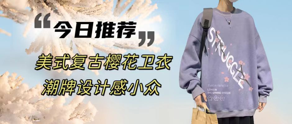vintage美式复古樱花无帽卫衣男oversize加绒潮牌设计感小众上衣 米白色 M