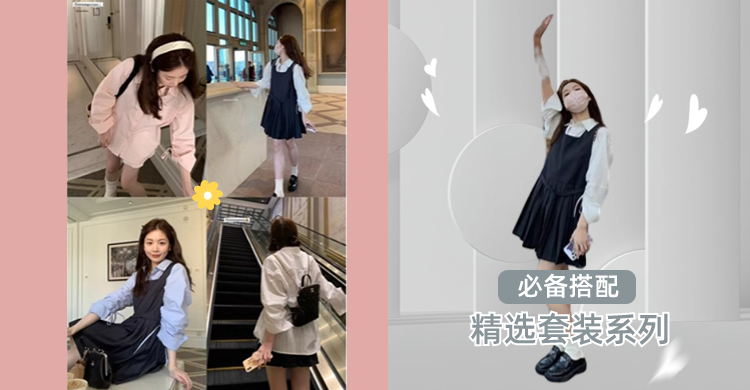 裙女长袖衬衫两件套百褶裙